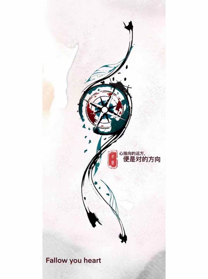 中式水墨-【指南针】纹身图片_手臂水墨指南针纹身图案