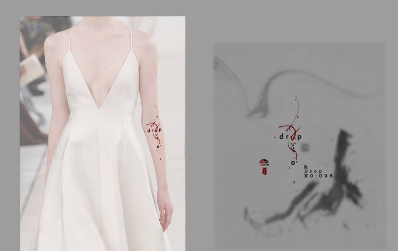 【触•坠】|国风抽象纹身图片_手臂腿部水墨花体字英文纹身图案