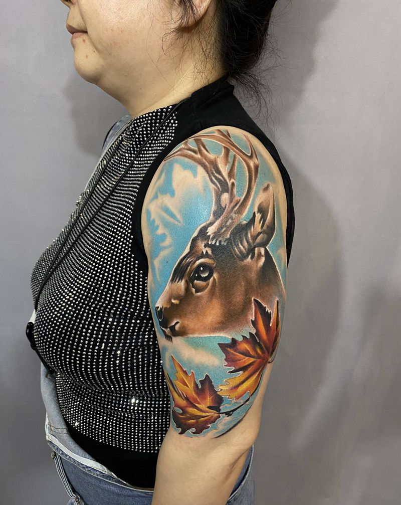 当前位置: 首页 >陕西省宝鸡市纹身店-暴走刺青纹身图案>鹿纹身图片_手臂欧美写实纹身图案