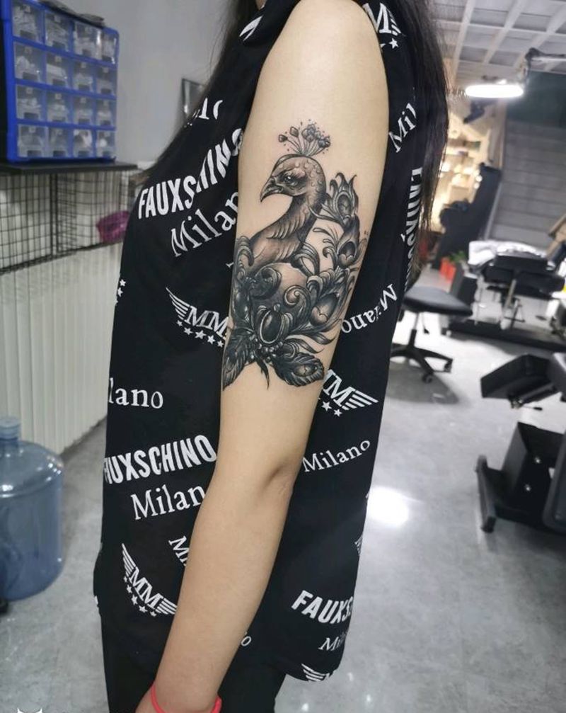 孔雀遮盖纹身图片_手臂新传统纹身图案
