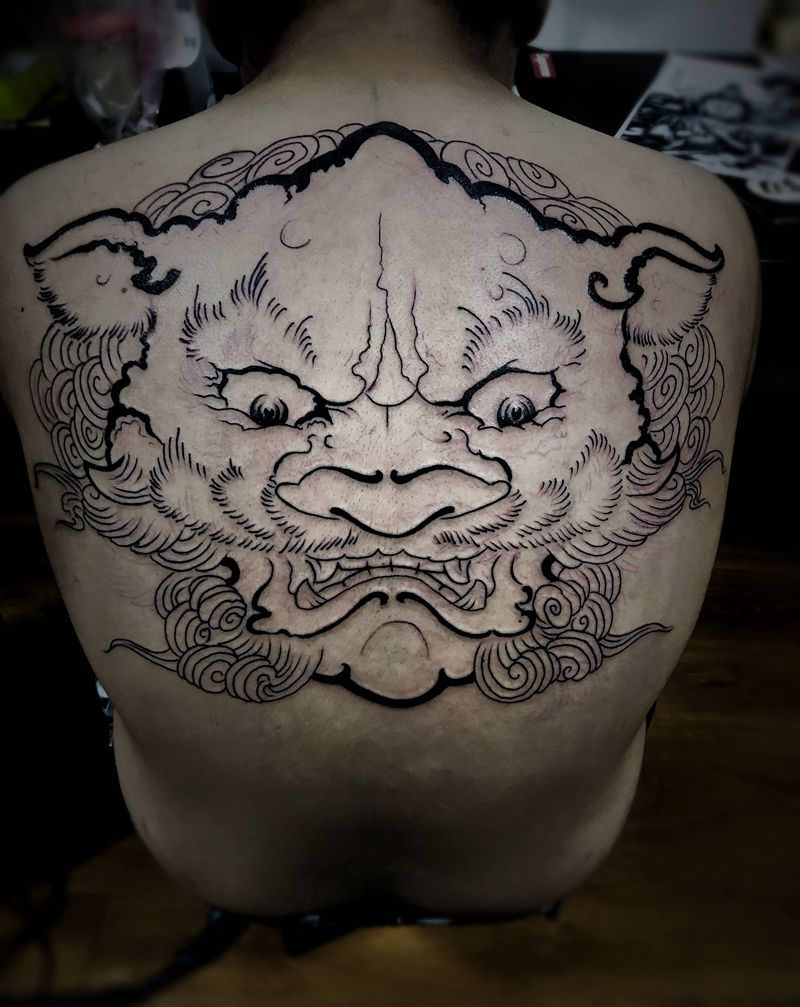 唐狮纹身图片_背部新传统老传统纹身图案