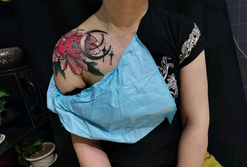 当前位置: 首页 >陕西省宝鸡市纹身店-暴走刺青纹身图案>牡丹肩花纹身图片_肩部纹身图案
