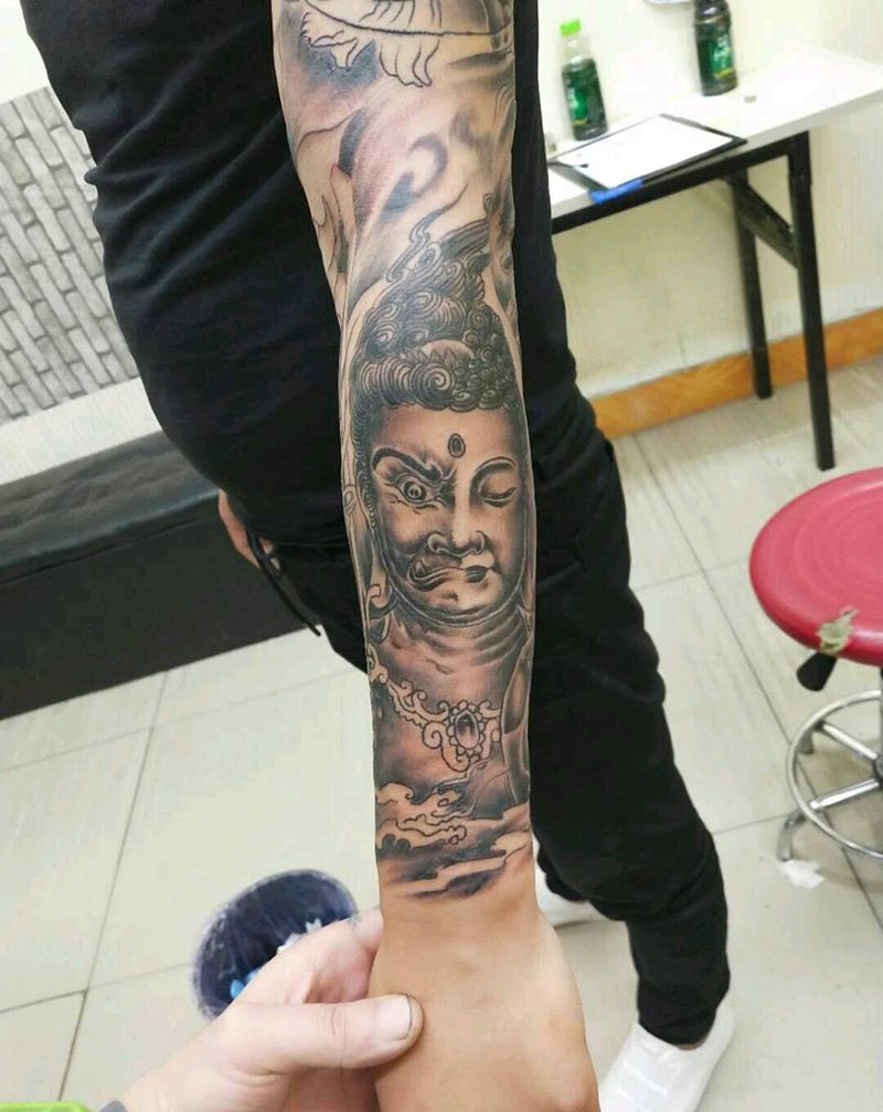 当前位置: 首页 >陕西省西安市纹身店-弘勋刺青纹身图案>花臂未完成纹身图片
