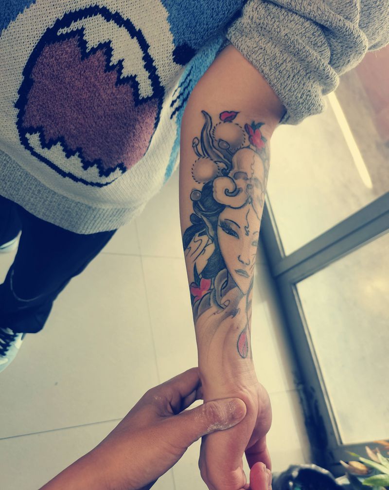 当前位置: 首页 >陕西省宝鸡市纹身店-雾彩入墨tattoo纹身刺青纹身图案>艺妓纹身图片_手臂纹身图案