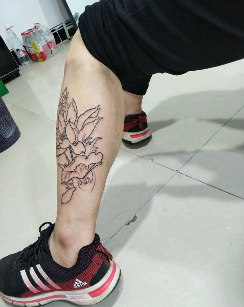 • T网红王老大花腿龙纹身图片_腿部新传统纹身图案
