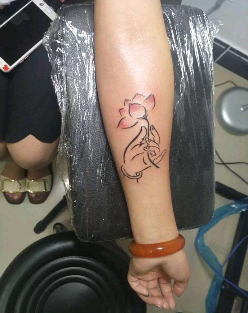 当前位置: 首页 >陕西省宝鸡市纹身店-雾彩入墨tattoo纹身刺青纹身图案>女士佛手莲花纹身图片