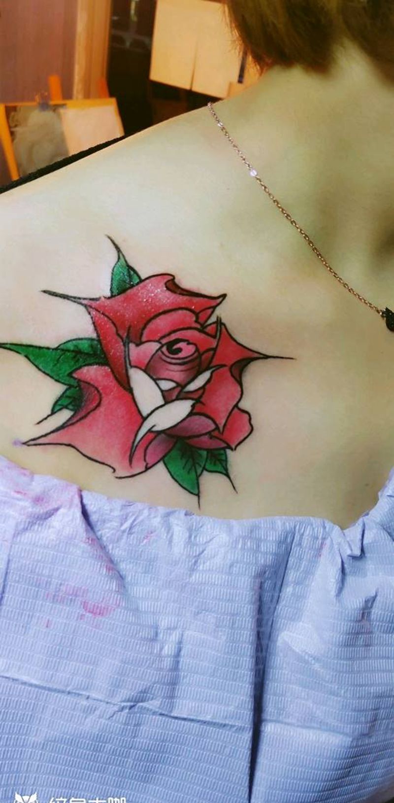 闺蜜玫瑰纹身图片_胸部纹身图案