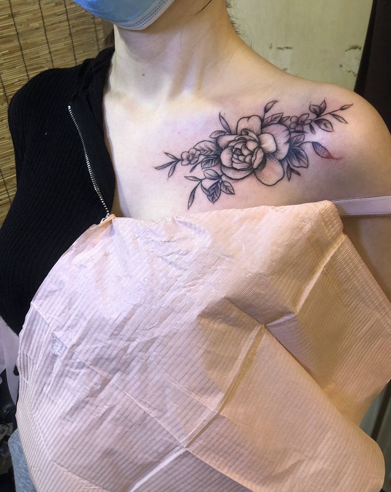 当前位置: 首页 >陕西省西安市纹身店-西安禅门刺青纹身图案>锁骨素花纹身图片_颈部点刺纹身图案