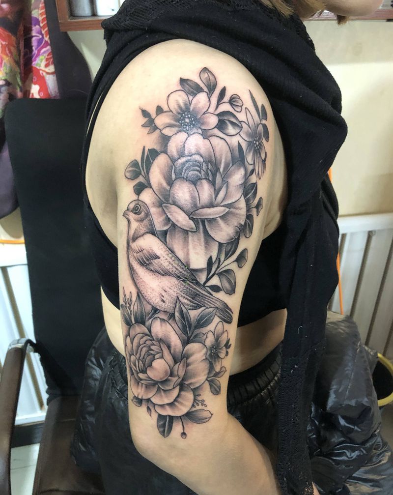 • 女性大花胸纹身_43张霸气漂亮的女性大花胸纹身图案作品