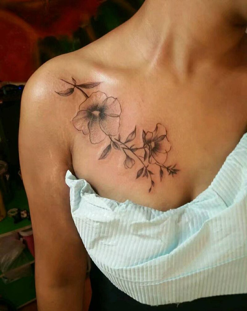 • 女性大花胸纹身_43张霸气漂亮的女性大花胸纹身图案作品