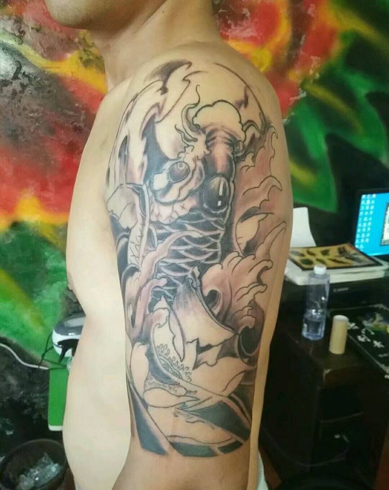当前位置: 首页 >陕西省西安市纹身店-西安禅门刺青纹身图案>黑灰鲤鱼纹身图片