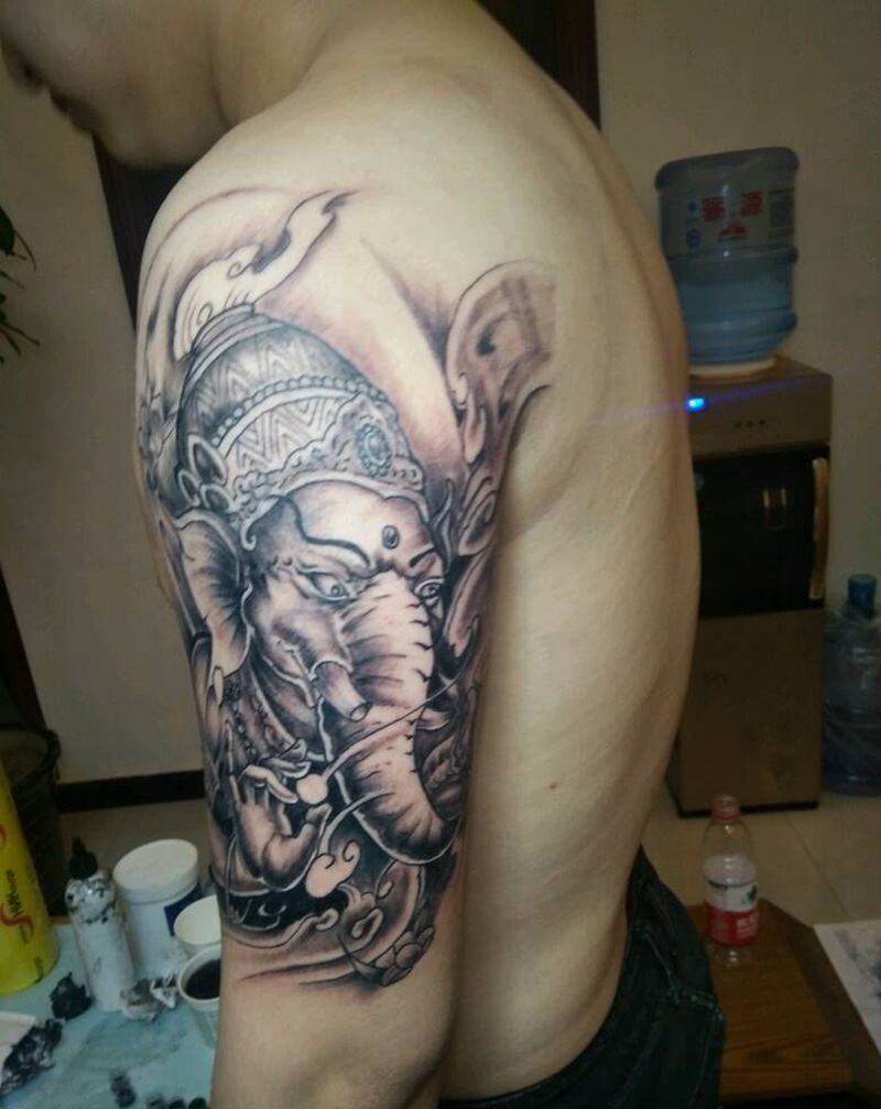 当前位置: 首页 >陕西省西安市纹身店-西安禅门刺青纹身图案>大臂象神纹身图片