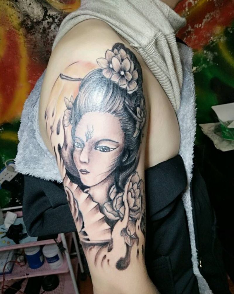 当前位置: 首页 >陕西省西安市纹身店-西安禅门刺青纹身图案>大臂艺妓初次完成,恢复好收拾细纹身图片
