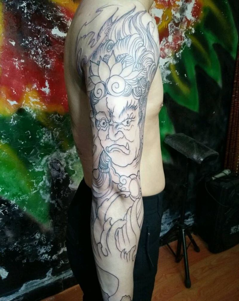 当前位置: 首页 >陕西省西安市纹身店-西安禅门刺青纹身图案>不动明王线条纹身图片