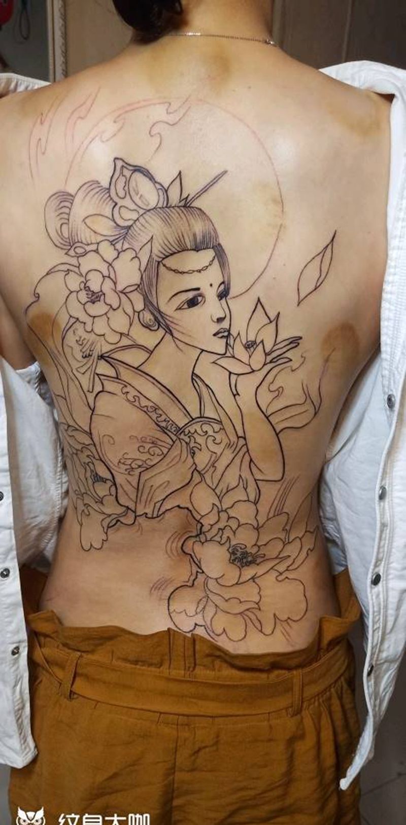 当前位置: 首页 >陕西省西安市纹身店-西安禅门刺青纹身图案>艺妓线条纹身图片