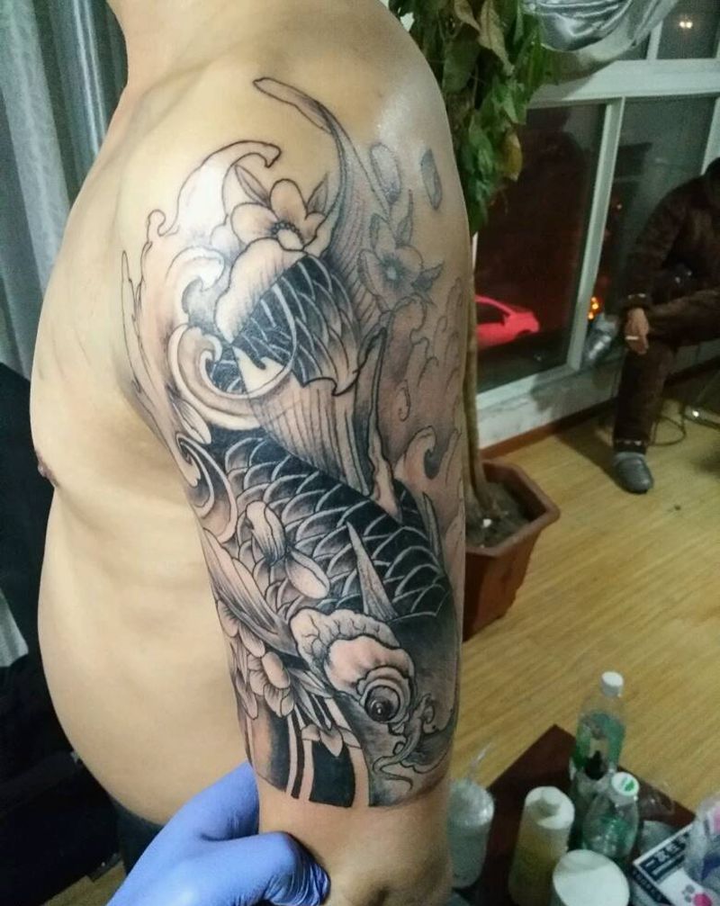 当前位置: 首页 >陕西省西安市纹身店-西安禅门刺青纹身图案>大臂鲤鱼纹身图片