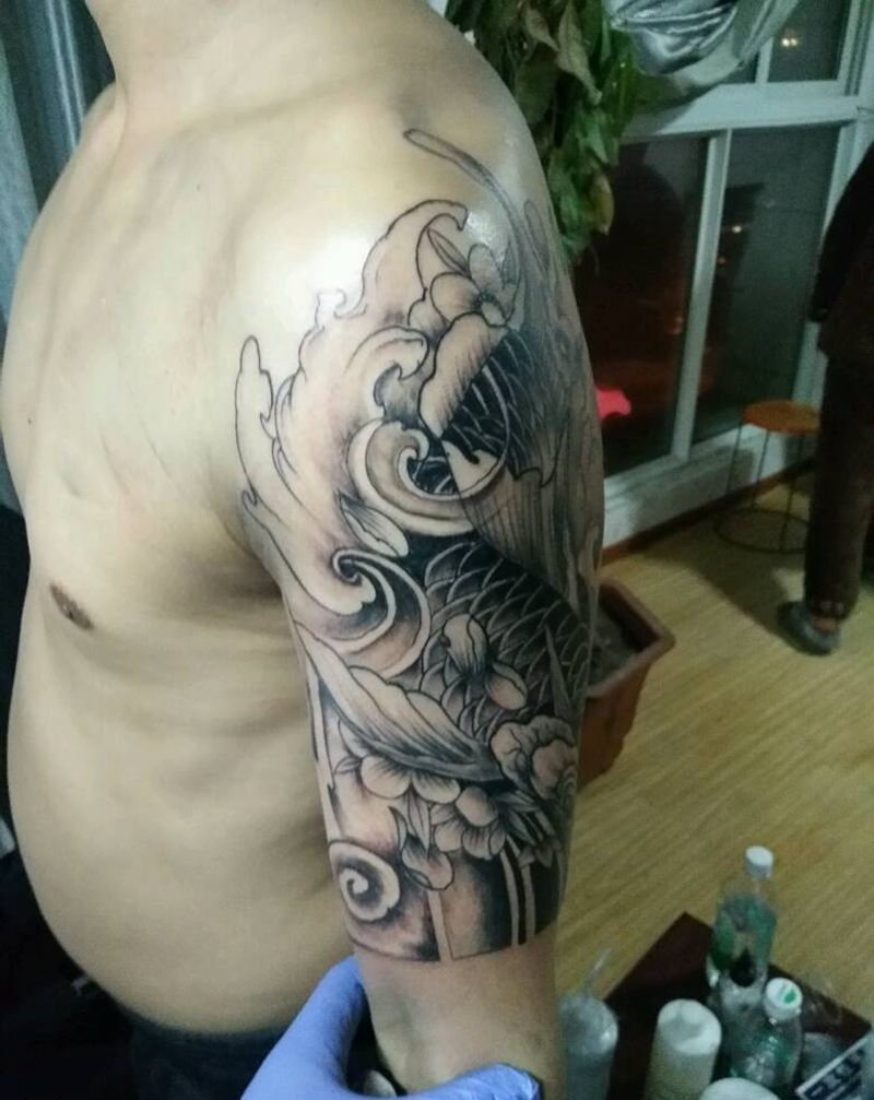 当前位置: 首页 >陕西省西安市纹身店-西安禅门刺青纹身图案>大臂鲤鱼纹身图片