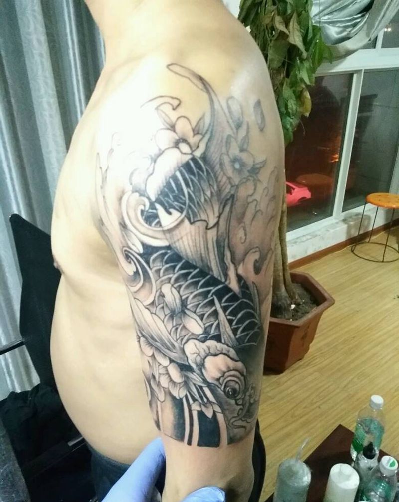 当前位置: 首页 >陕西省西安市纹身店-西安禅门刺青纹身图案>大臂鲤鱼纹身图片