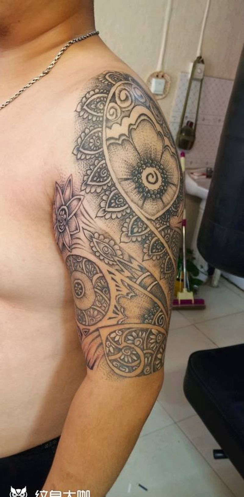 • 纹身吧推荐的披肩图腾半胛纹身图案作品展示