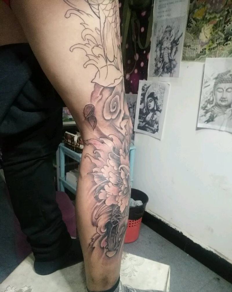 当前位置: 首页 >陕西省西安市纹身店-西安禅门刺青纹身图案>鲤鱼包半腿,未完纹身图片