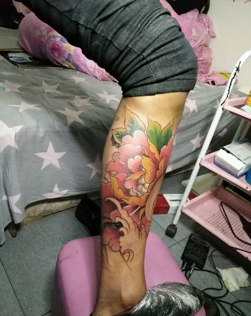• T网红王老大花腿龙纹身图片_腿部新传统纹身图案