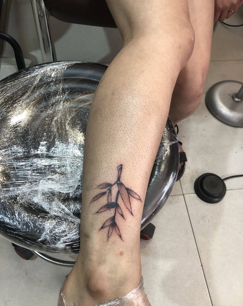 原创竹纹身图片_腿部纹身图案