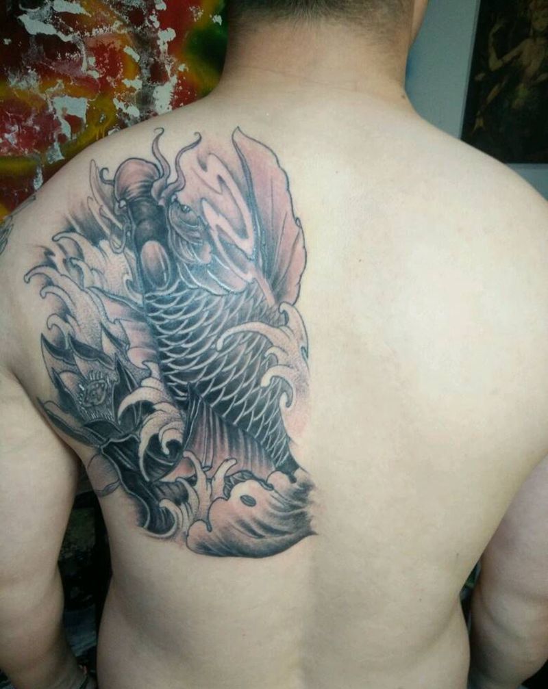 当前位置: 首页 >陕西省西安市纹身店-西安禅门刺青纹身图案>后肩鲤鱼纹身图片