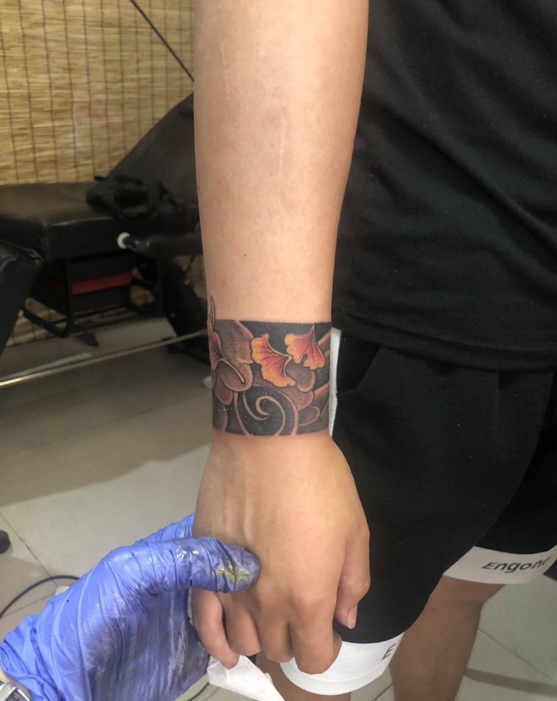 当前位置: 首页 >陕西省西安市纹身店-西安禅门刺青纹身图案>老传统臂环遮盖顾客老纹身纹身图片_手臂老传统纹身图案