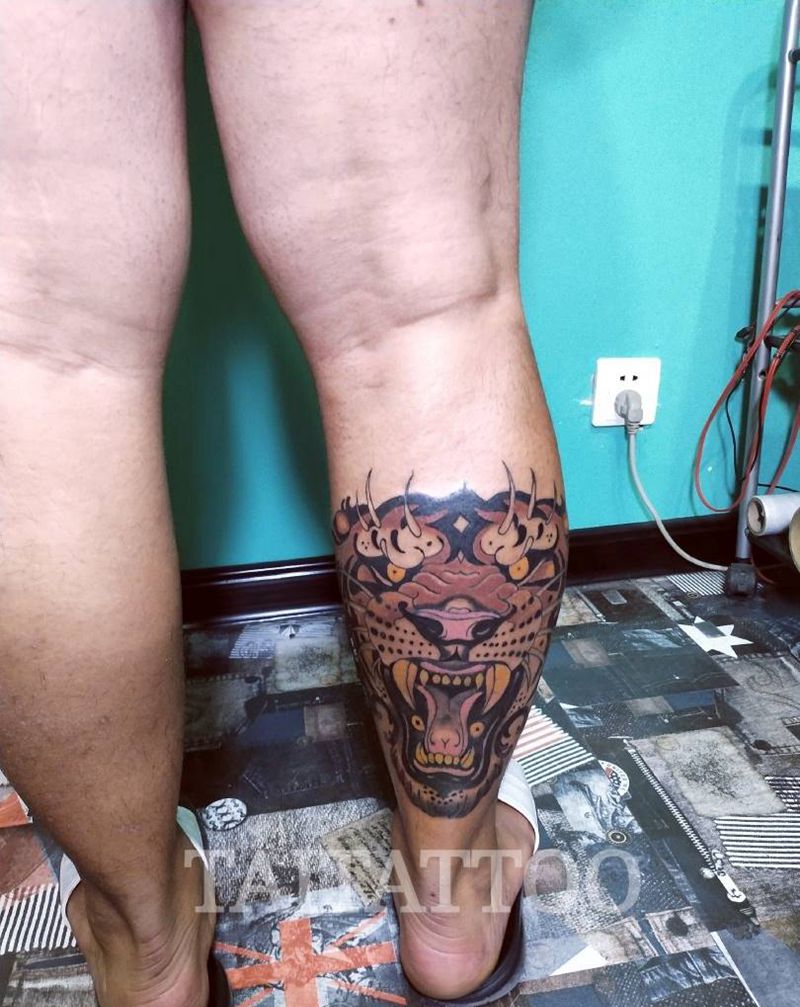 • T网红王老大花腿龙纹身图片_腿部新传统纹身图案