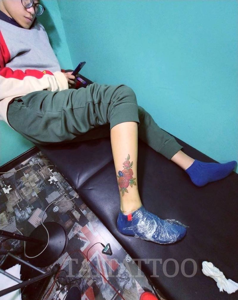• T网红王老大花腿龙纹身图片_腿部新传统纹身图案