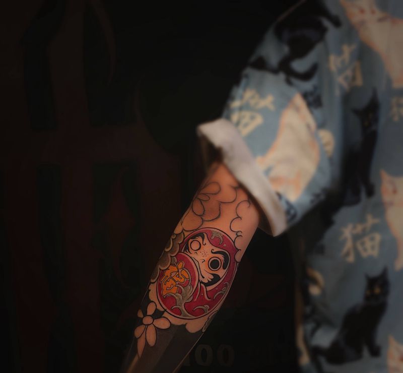 当前位置: 首页 >陕西省西安市纹身店-乾言刺青纹身图案>达摩蛋纹身图片_手臂老传统纹身图案