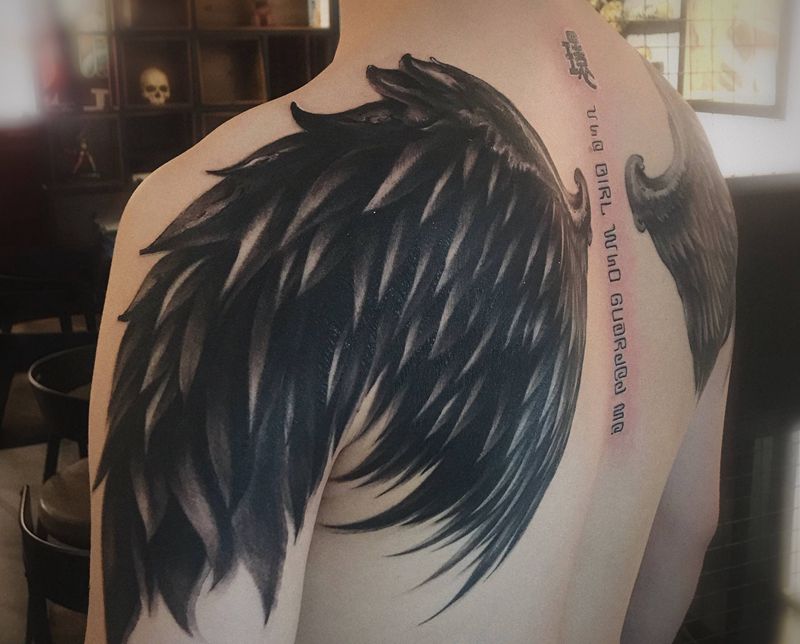 黑灰满背纹身图案