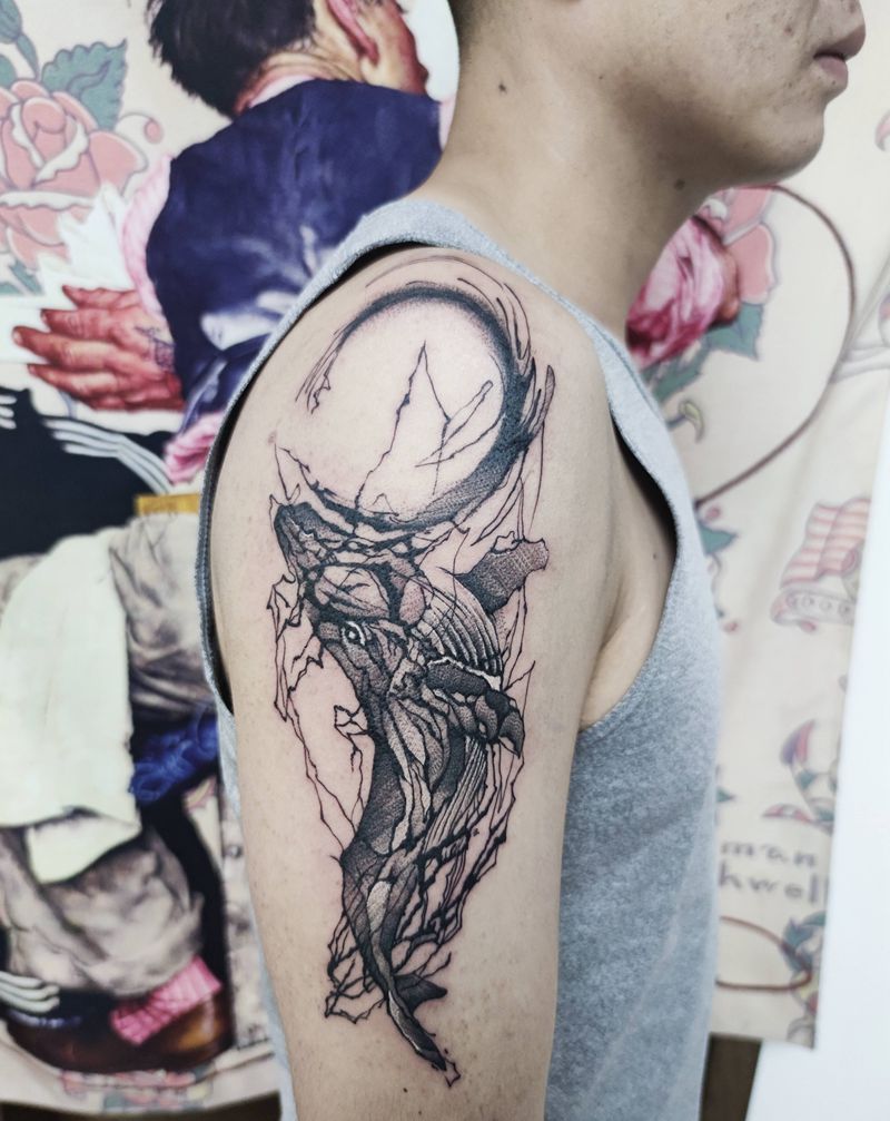 当前位置: 首页 >陕西省咸阳市纹身店-七海堂纹身图案>鲸鱼纹身图片_手臂水墨纹身图案