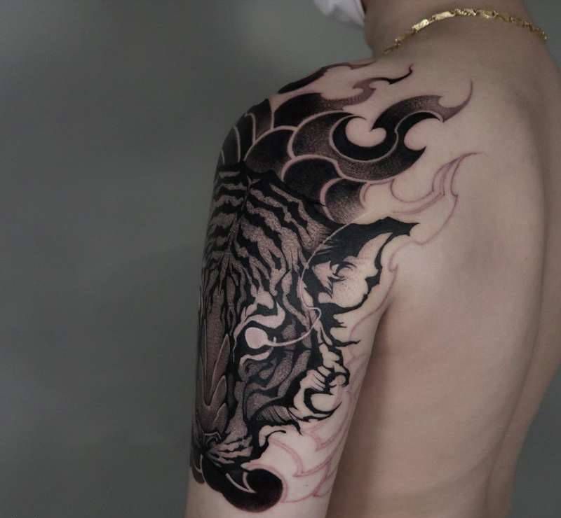 • 纹身吧推荐的披肩图腾半胛纹身图案作品展示