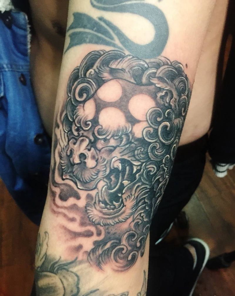当前位置: 首页 >陕西省咸阳市纹身店-七海堂纹身图案>唐狮子纹身图片