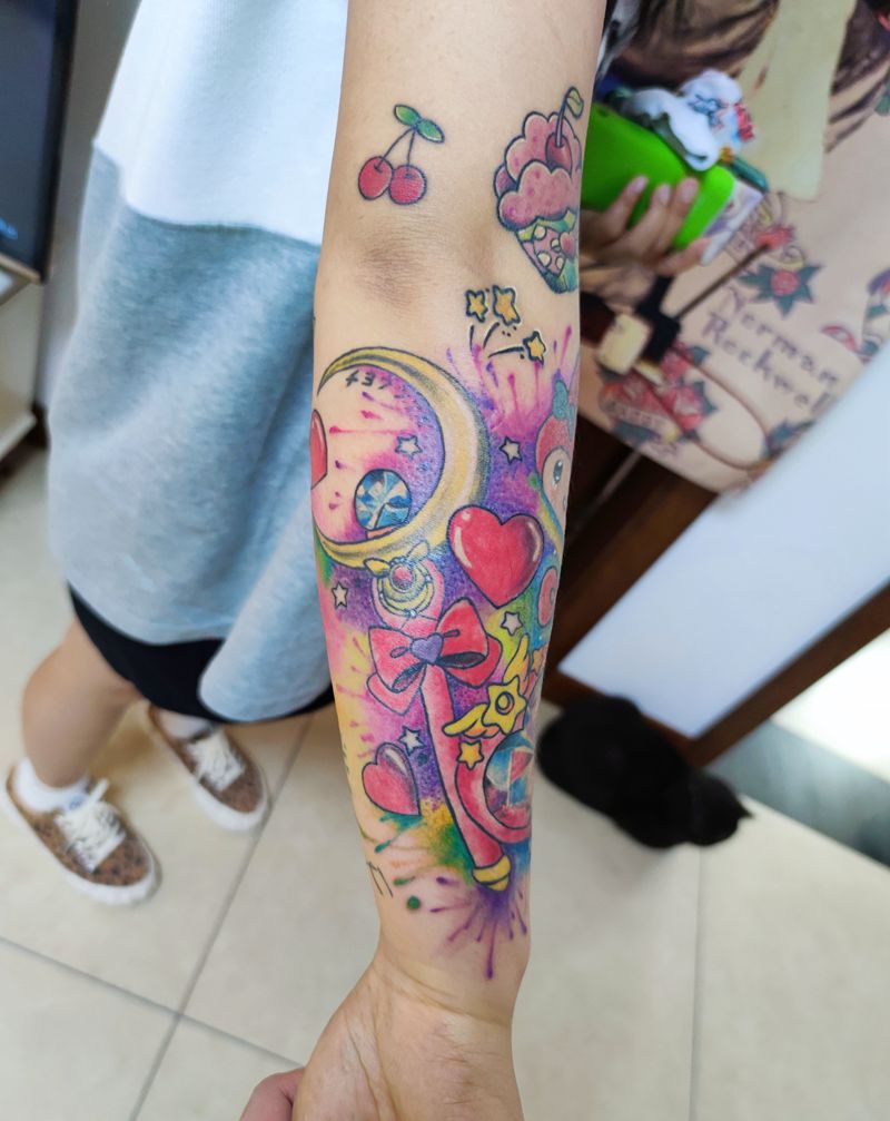 当前位置: 首页 >陕西省咸阳市纹身店-七海堂纹身图案>卡通花臂纹身图片_手臂Old School纹身图案