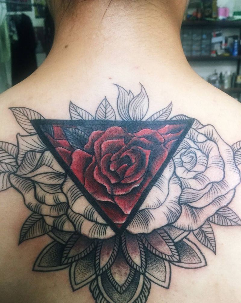 • 手背潮流时尚的玫瑰花眼睛纹身图案