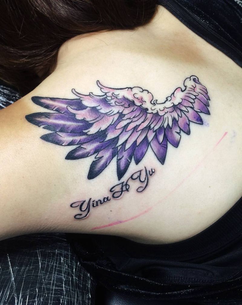 原创情侣款天使之翼纹身图片_原创欧美肩部纹身图案