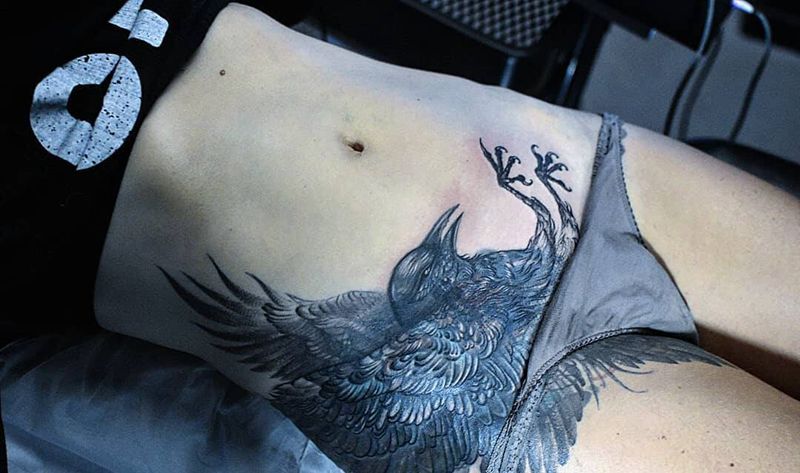 遮盖纹身图片_腹部纹身图案