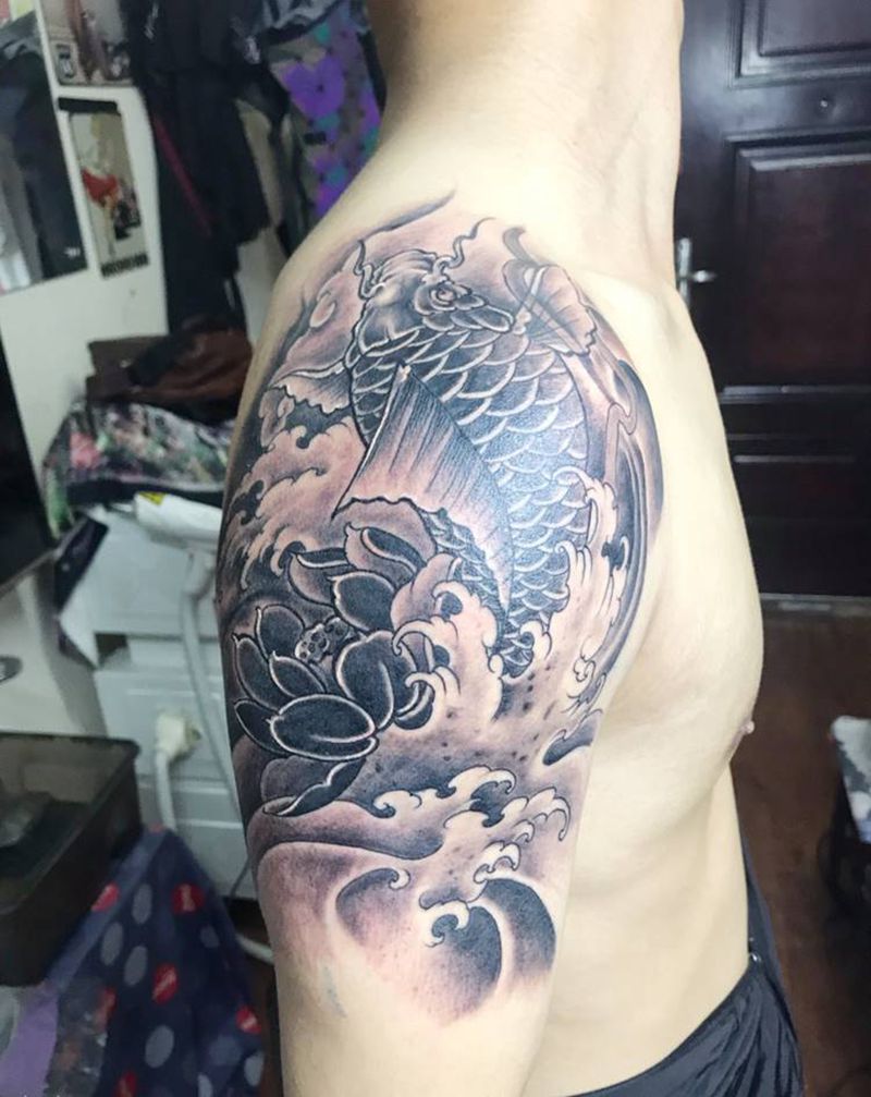 鲤鱼纹身图片_肩部新传统纹身图案