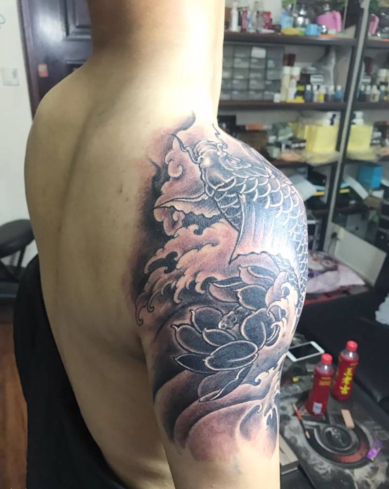 鲤鱼纹身图片_肩部新传统纹身图案