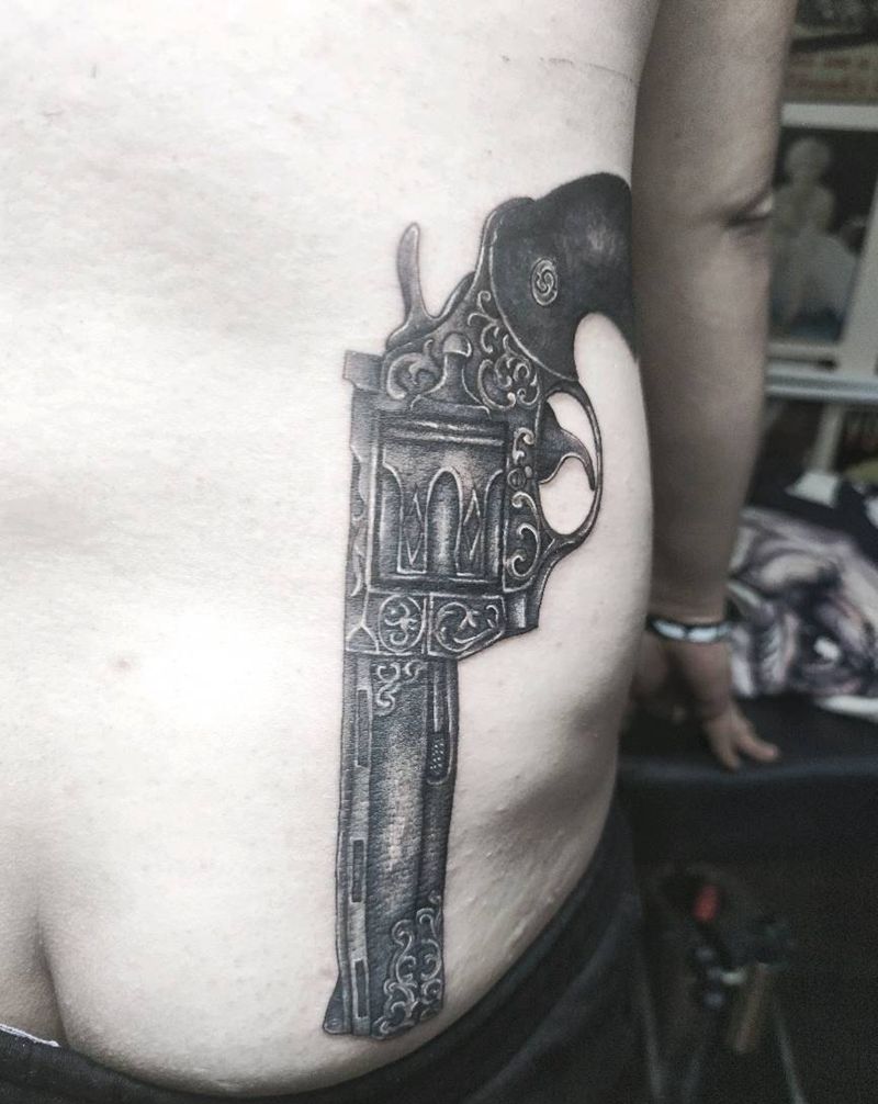 柯尔特左轮手枪纹身图片_腰部纹身图案