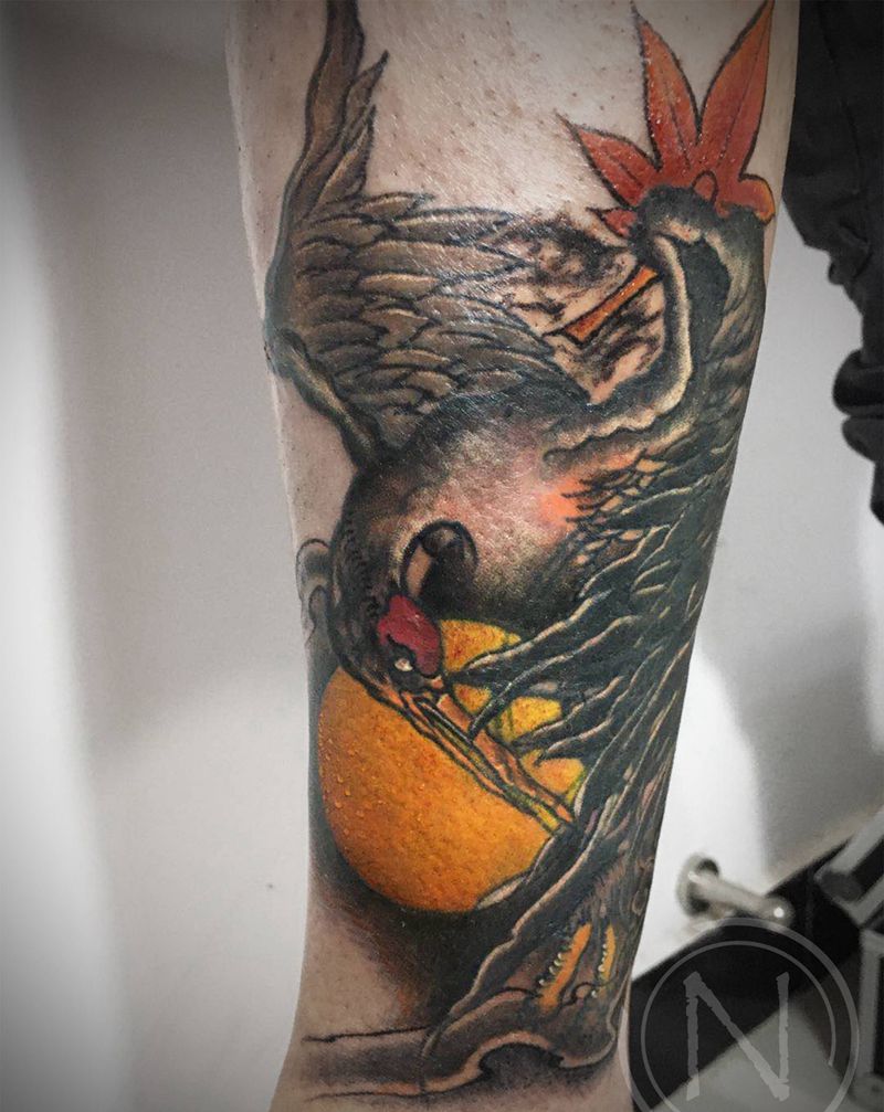 当前位置: 首页 >陕西省咸阳市纹身店-N刺青工作室纹身图案>传统—鹤纹身图片_腿部新传统鹤云枫叶