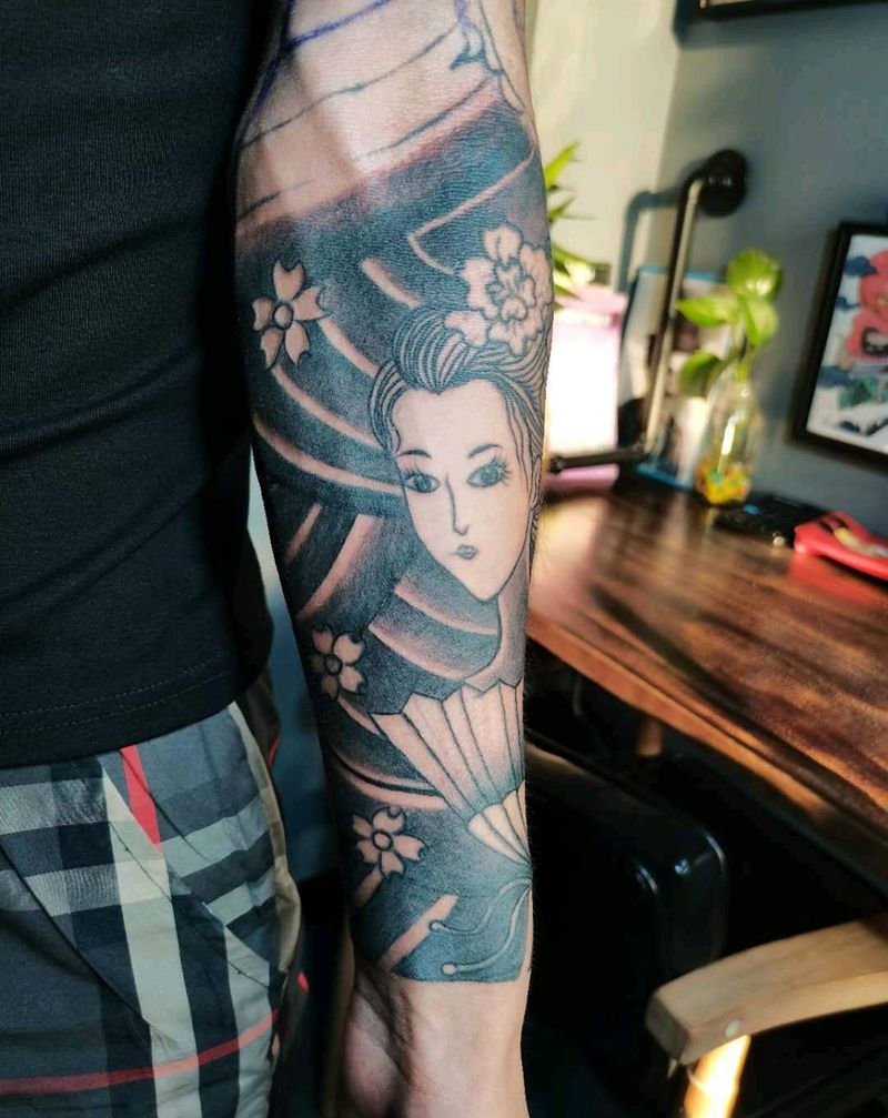 当前位置: 首页 >陕西省宝鸡市纹身店-甲古纹刺青纹身图案>修改花臂未完纹身图片_手臂老传统纹身图案