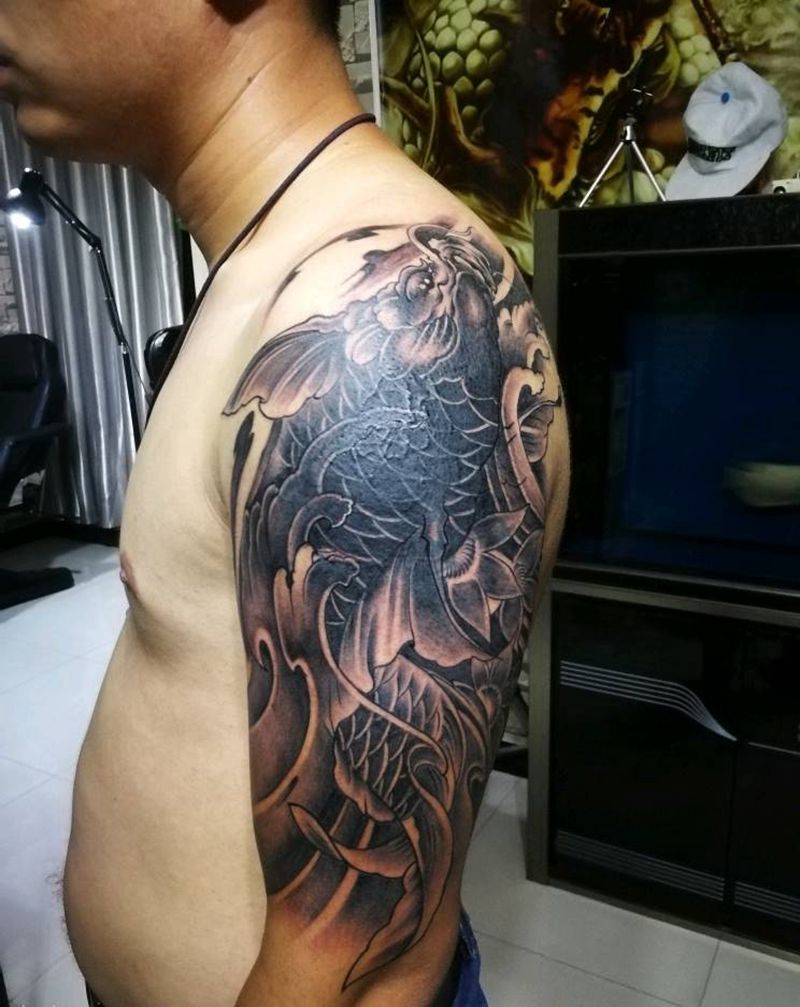 当前位置: 首页 >陕西省宝鸡市纹身店-甲古纹刺青纹身图案>鲤鱼遮盖纹身图片