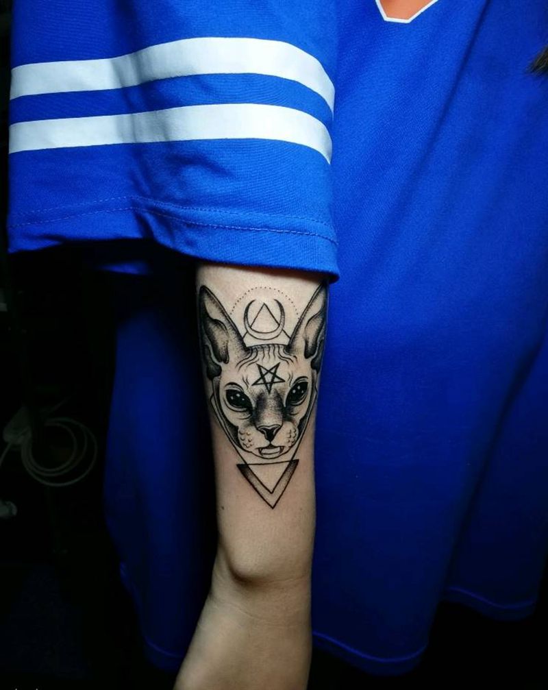 当前位置: 首页 >陕西省宝鸡市纹身店-甲古纹刺青纹身图案>猫纹身图片_手臂点刺纹身图案