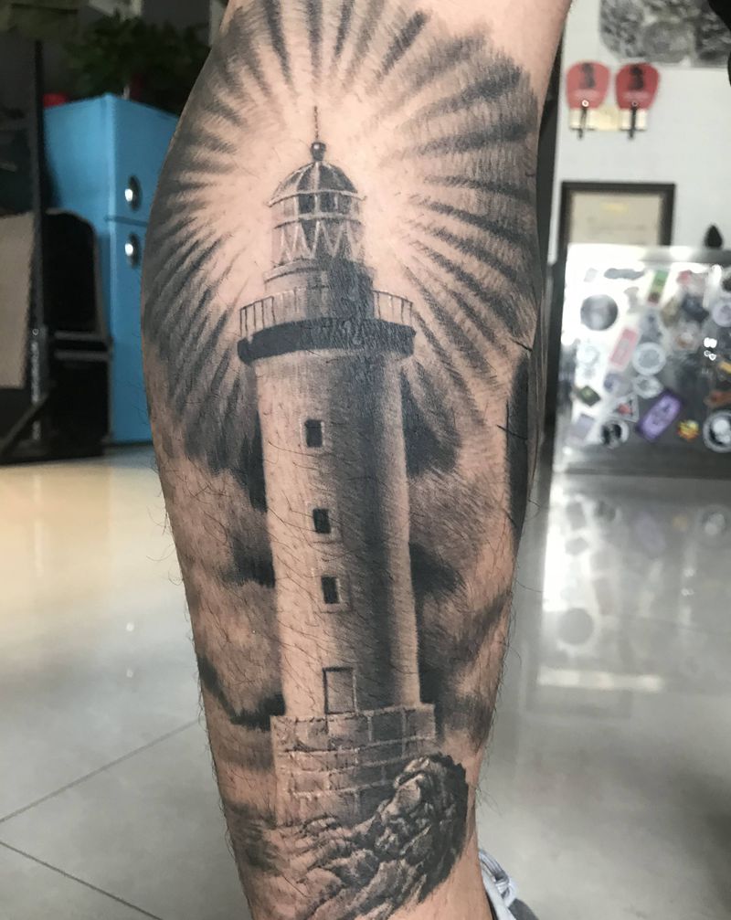 【航海】整个小腿纹身图片_腿部欧美写实纹身图案