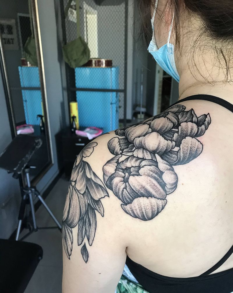 【素花】用时4h。纹身图片_肩部点刺纹身图案