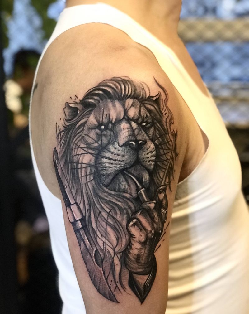 【狮】遮盖作品纹身图片_手臂纹身图案