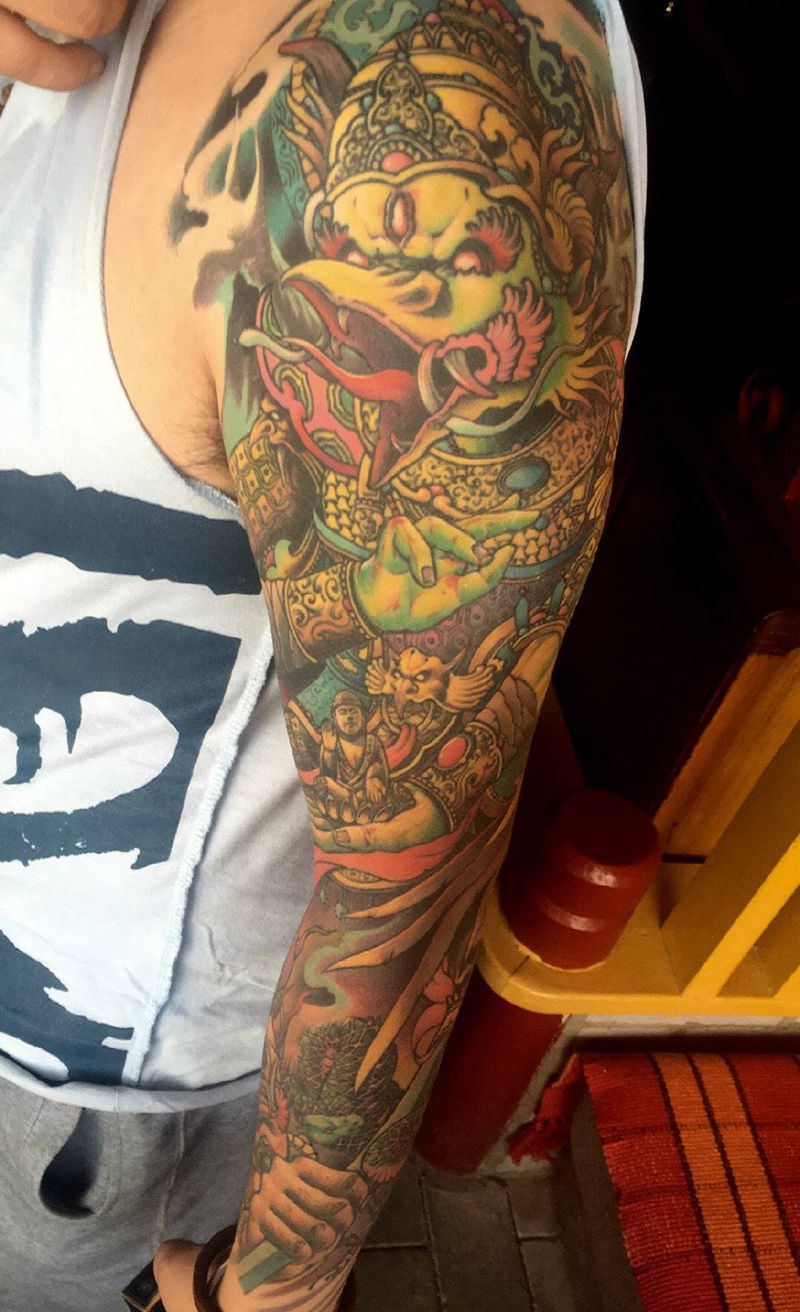 当前位置: 首页 >甘肃省兰州市纹身店-兰州赤炎刺纹身工作室纹身图案>大鹏金翅鸟恢复一年后纹身图片_手臂手部老传统新传统大鹏金翅鸟迦楼罗原创纹身图案